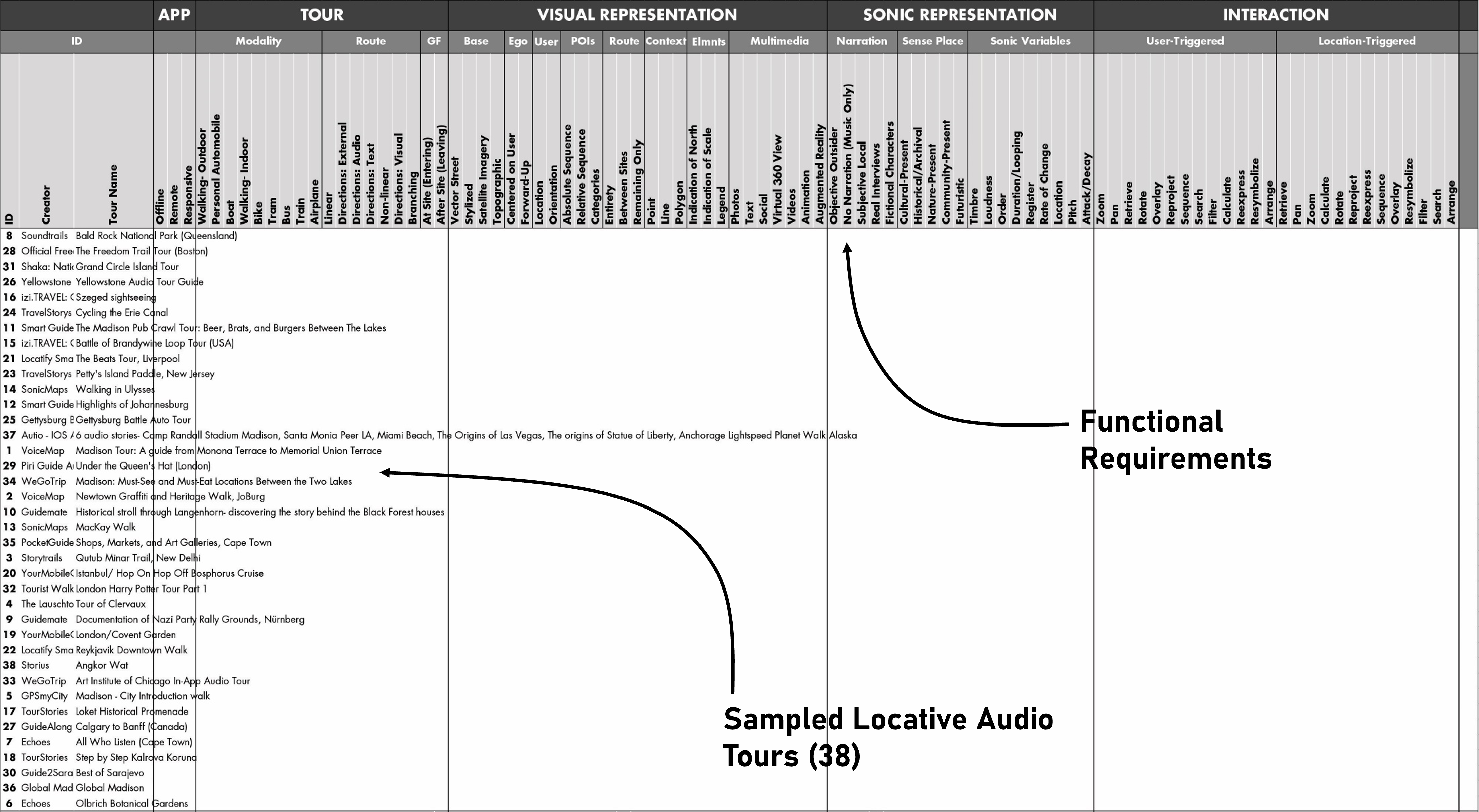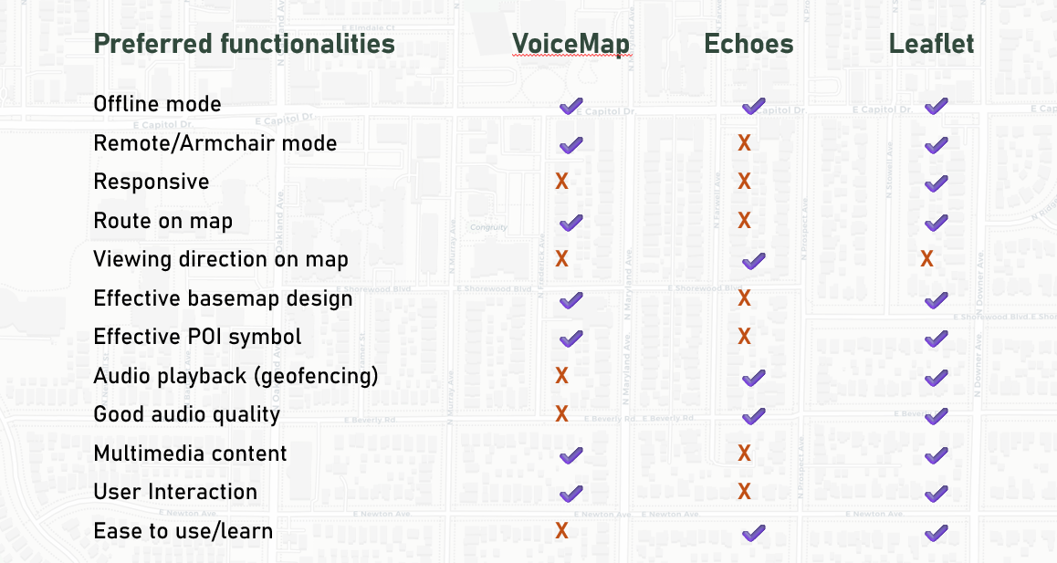 As a first step, we conducted a comprehensive analysis of existing locative audio apps and storymaps, evaluating features such as usability, engagement strategies, and content depth. This helped us identify:
